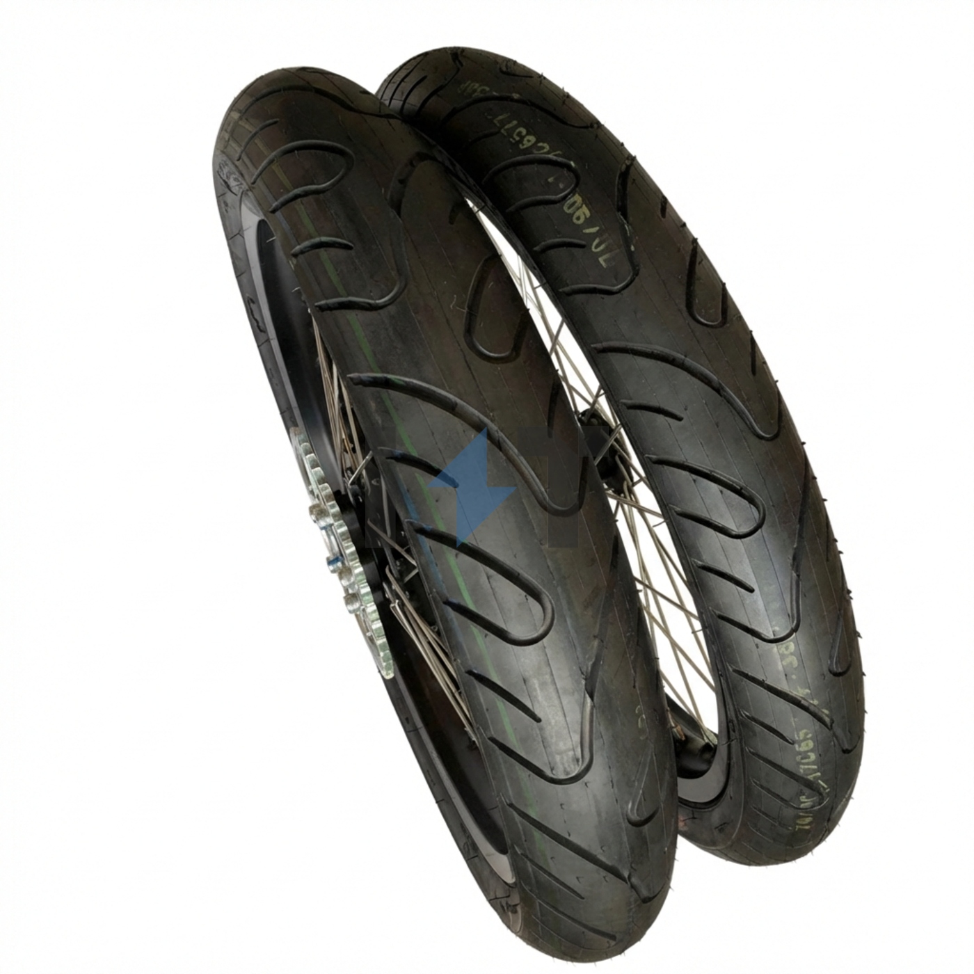 Описание Включает передние и задние шины и камеры, ободную ленту, ободья, передние и задние тормозные диски с болтами, заднюю звездочку с болтами, цепь