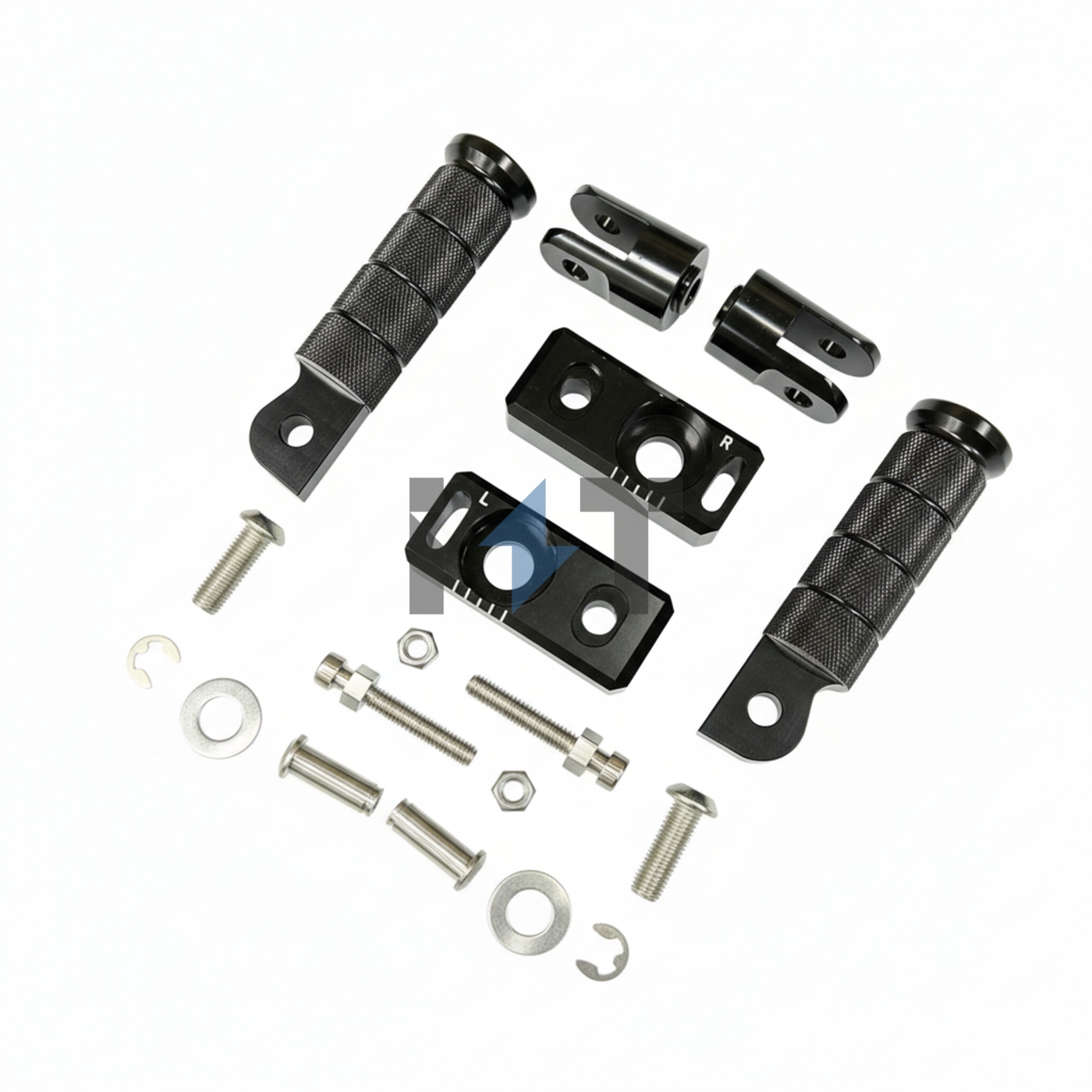 \nКомплект для установки подножек на маятник для выполнения различных трюков и вилли. \n \nВключает в себя кронштнейны, подножки и весь необходимый крепеж для установки. \n \nИзготовлены из алюминия методом фрезеровки. \nПокрытие: андорование.